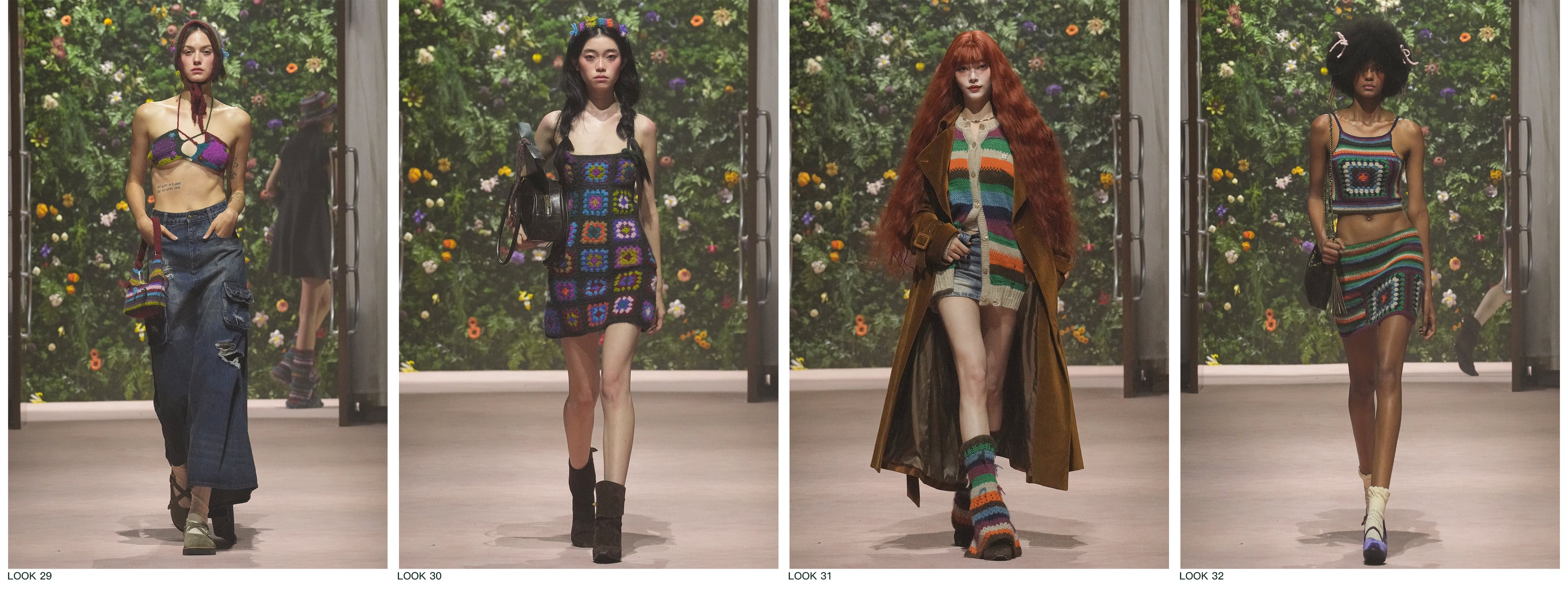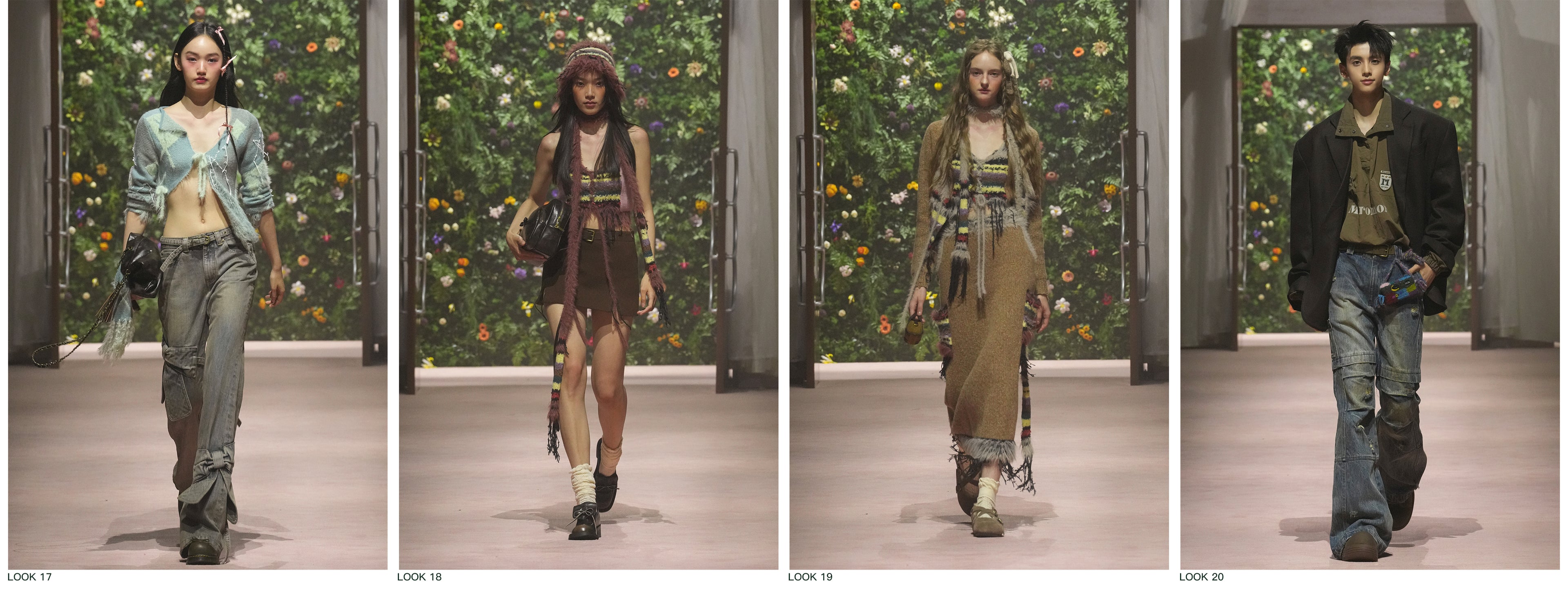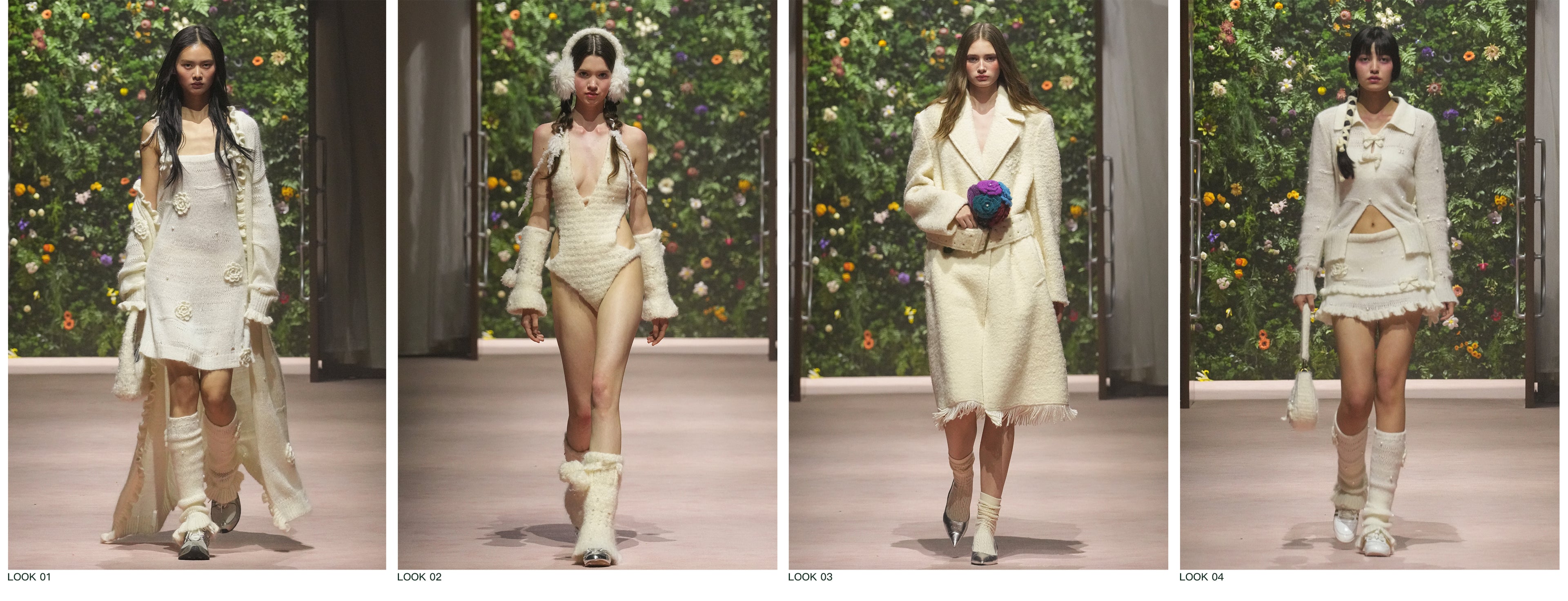 Color and knitwear remain the cornerstones of this collection, upon which a fusion of diverse styles blossoms:Pure white lays the immaculate canvas for the maiden's journey;Denim in various washes strikes a harmonious balance between sweetness and edge;Intricate yarn work crafts a vivid tapestry of fantasy;The introduction of the Maillard color palette endows the season with a rich, warm undertone.